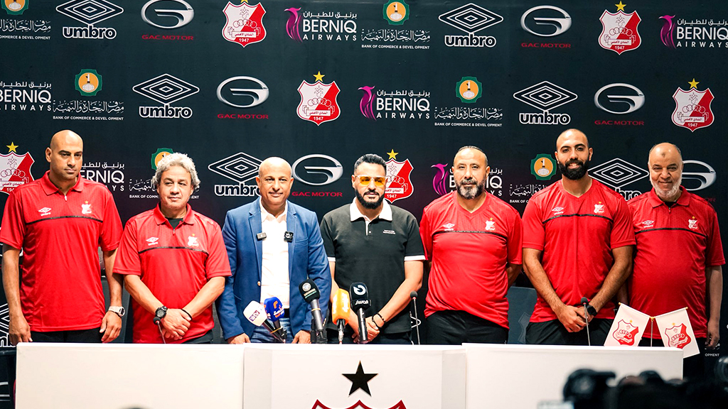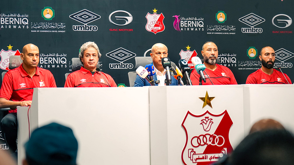 وقد بدا الطاقم الفني واثقاً في المؤتمر الصحفي، وهم يرتدون قمصان الأهلي الحمراء الأنيقة بماركة Umbro.