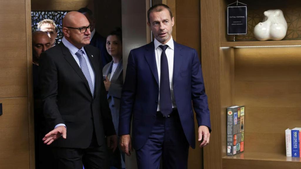 تحدث رئيس الاتحاد الأوروبي لكرة القدم ألكسندر تشيفرين هاتفياً مع رئيس الاتحاد الإسرائيلي لكرة القدم موشي “شينو” زواريس قبل أيام، وأوضح أن مسألة تعليق عضوية إسرائيل لم تُطرَح للنقاش على الإطلاق، سواء في “يويفا” أو في الاتحاد الدولي لكرة القدم (فيفا).