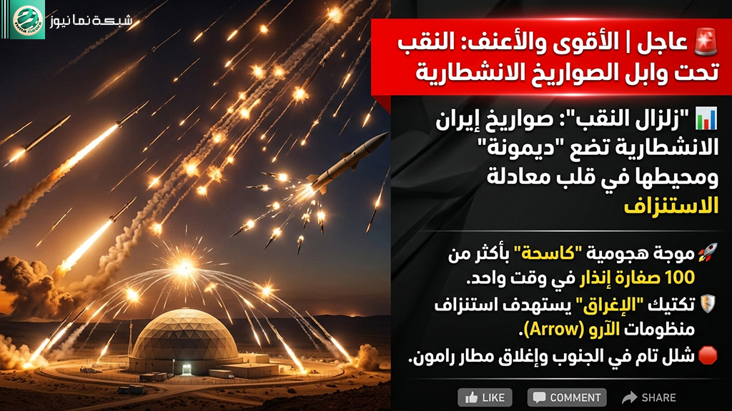 استهداف محيط ديمونة بـ 100 صفارة إنذار متزامنة هو رسالة إيرانية مفادها أن “الخطوط الحمراء” قد سقطت، وأن أي استهداف للمنشآت النووية الإيرانية سيقابله تهديد مباشر للمنظومة الاستراتيجية الإسرائيلية في الجنوب.