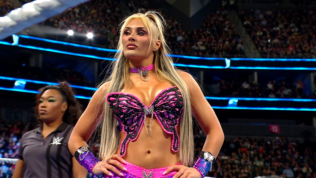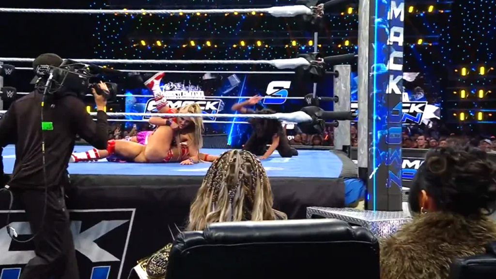 حاولت العملاقة “جوردي” سحق عظام تيفاني بوابل من الـ (Slam) والـ (Suplex)، محولة صدر تيفاني إلى لوحة من اللون الأحمر بفعل ضربات الـ (Lariats) العنيفة، ومستعرضة قوة جسدية تشبه الدبابة العسكرية.